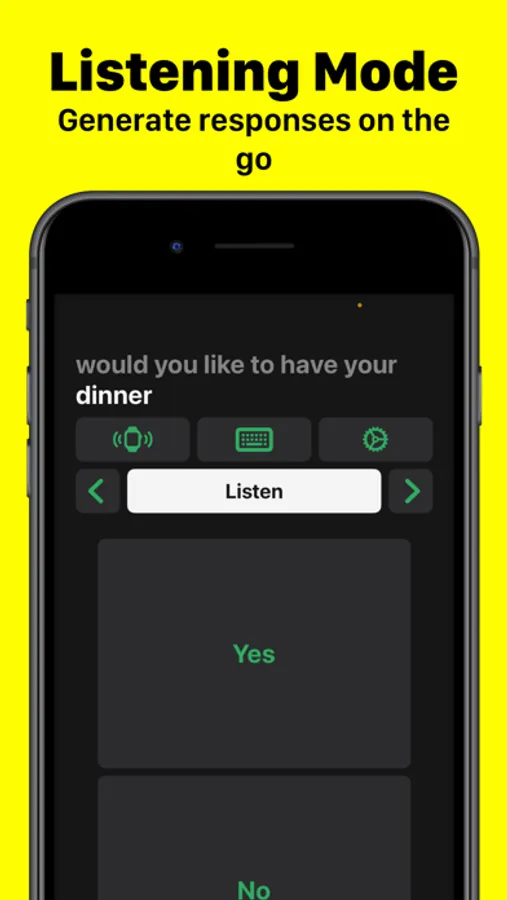 3. Listening mode - Let the app generate answers to the questions you are asked to. ( Currently, only YES or NO, Either OR and Number answers are supported)