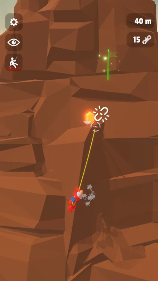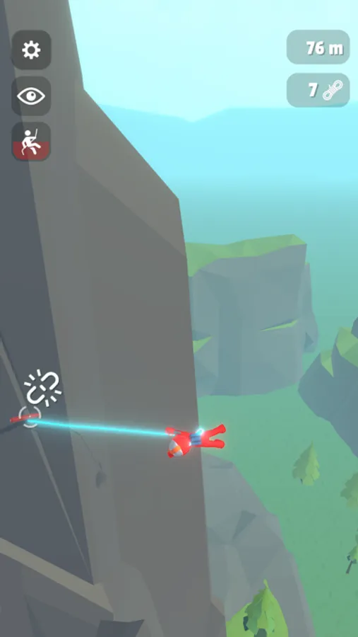 Tap to launch your hook. Move freely on the 3D environment. Your objective is reach the top of the mountains and peaks.