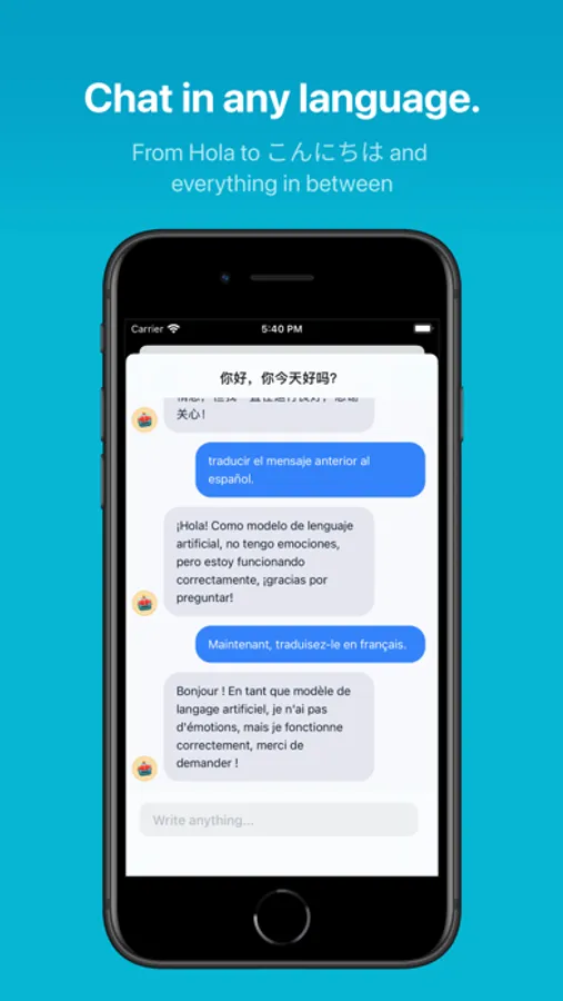 • Chat in any language, thanks to GPT 3's AI's impressive linguistic talents