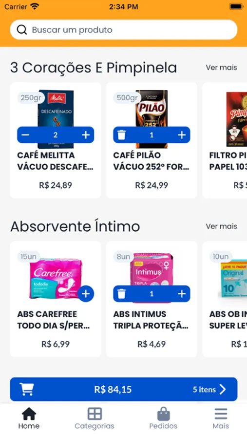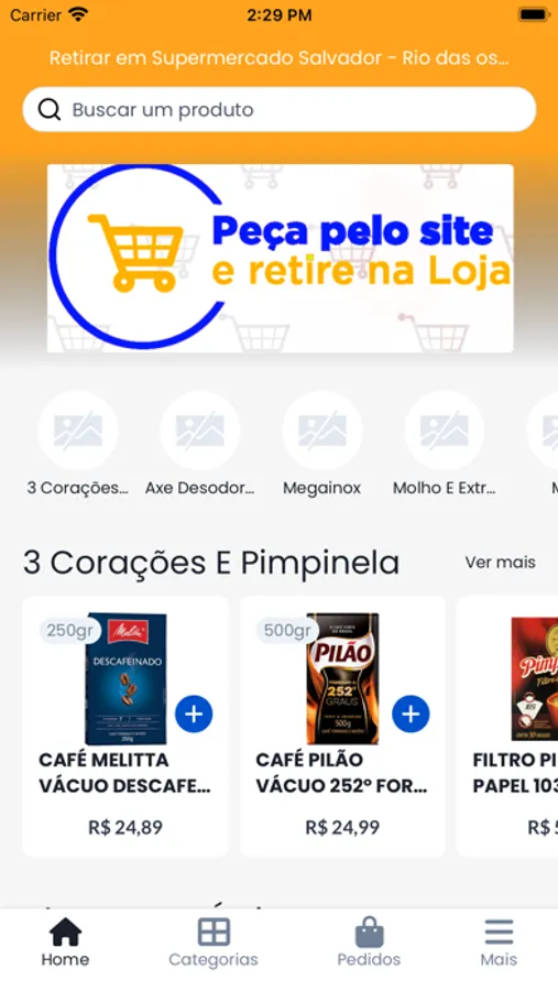 1 - Selecione os produtos: navegue pelas categorias e escolha os seus itens.