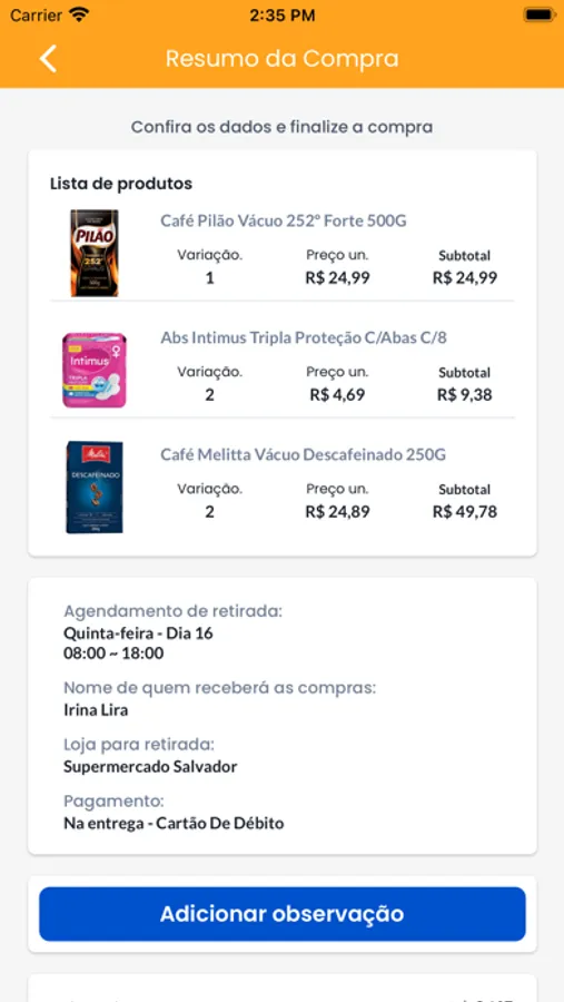 2 - Confira sua compra no carrinho: veja os itens que você incluiu.
