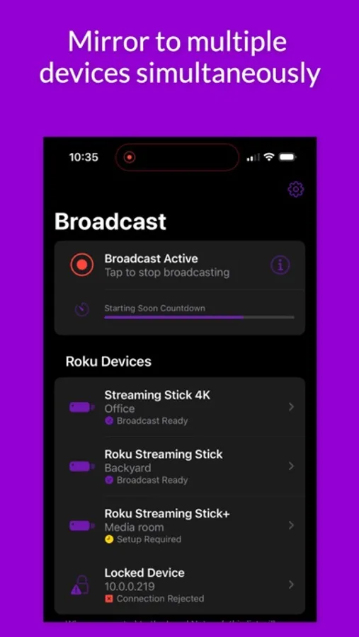 * Automatically start the broadcast on all your connected and configured Roku devices.