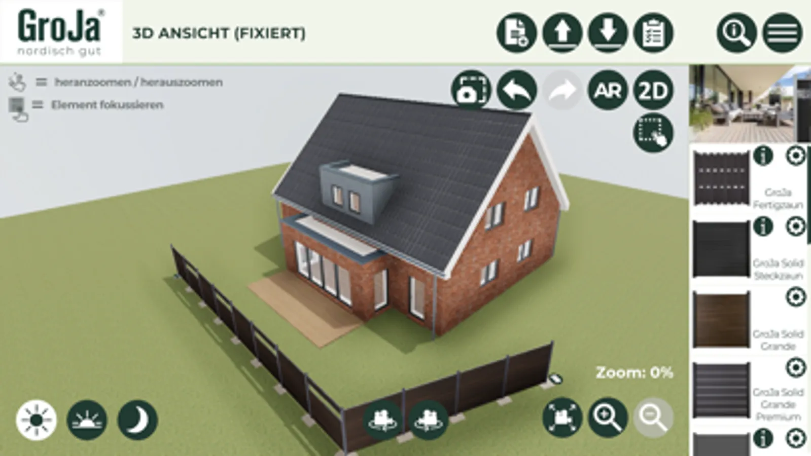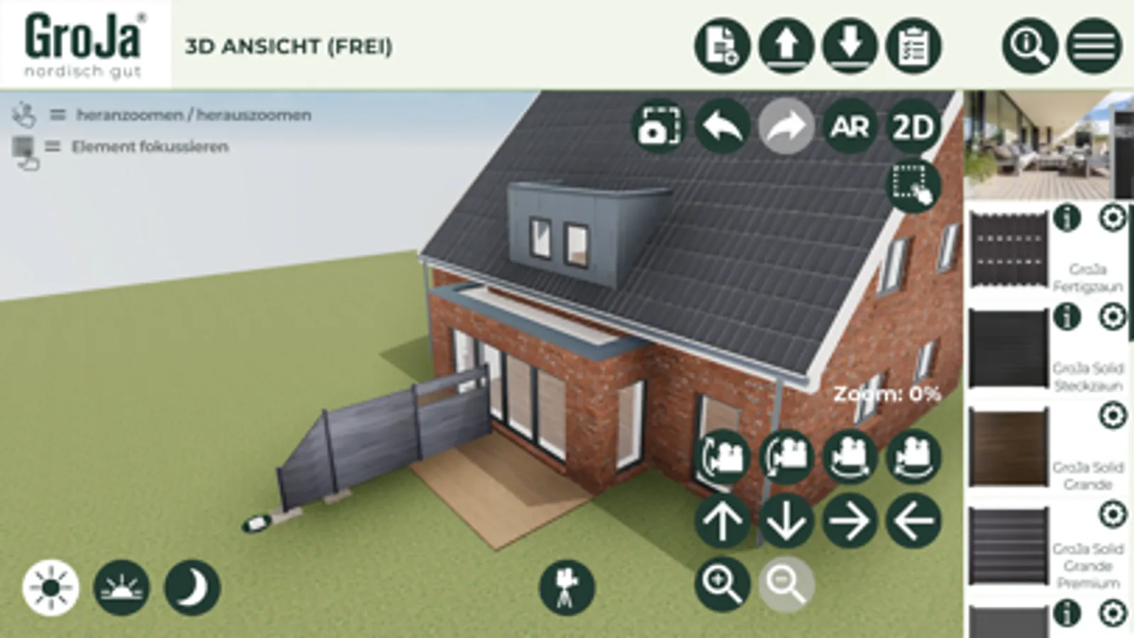 Sie bevorzugen eine 2D-Planung? Kein Problem! Wählen Sie einen Hausumriss und platzieren Sie alle Elemente auf der Fläche. Passen Sie alles ganz nach Ihren Wünschen an und erhalten Sie durch hilfreiche Tipps und Erklärungen eine perfekte Übersicht. In Windeseile haben Sie Ihr Wunschprojekt umgesetzt. Doch das ist noch nicht alles! Wechseln Sie jederzeit in die dritte Dimension und staunen Sie über die realistische Darstellung Ihrer selbst gestalteten Anlage. Bewegen Sie sich frei in Ihrem virtuellen Garten und betrachten Sie alle Elemente im Ganzen oder zoomen Sie für eine Detailansicht nah heran.