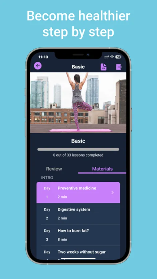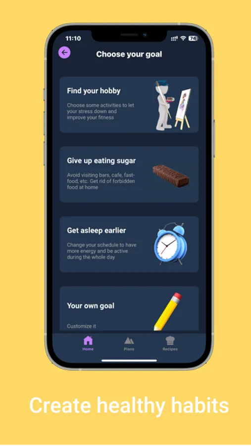 In addition to nutrition tips and recipes, our app also offers you a diary with different body type programs and the ability to set custom goals with reminders.