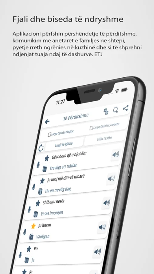 Aplikacioni gjithashtu ofron mundësinë për të dëgjuar fjalinë me zë nga suedezfolësit.