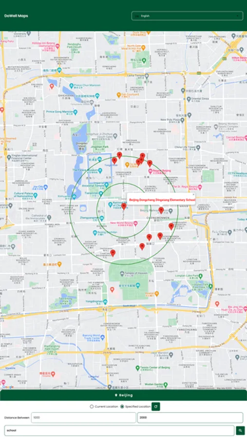 Users using this app will be in a position to search for a place of their own choice in a given radius distance. This will show the number of locations associated with the text in search within that radius they chose.
