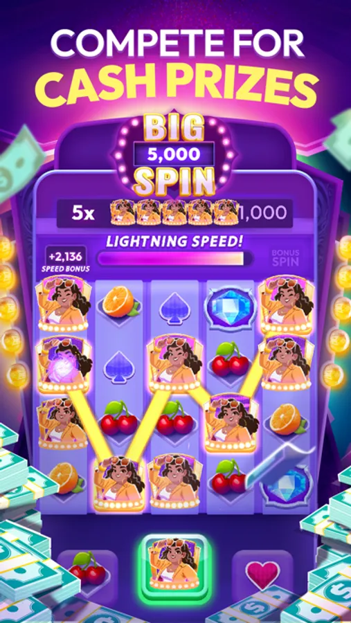 With this brand new slot game you don’t have to beat the casino, you can win real money rewards and cash prizes (where available) playing against friends and slots players around the world with this Skillz Powered slots game!