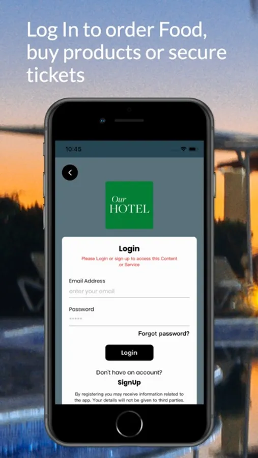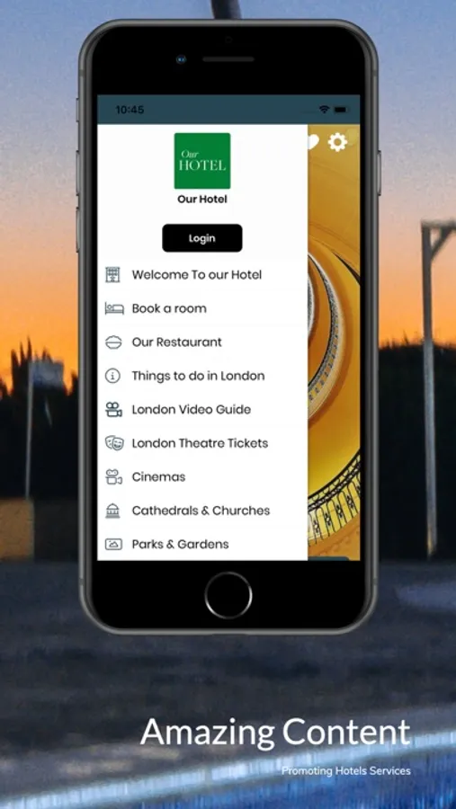 Our Hotel App allows you to promote all your hotel services, from Booking rooms to restaurant and room service orders.