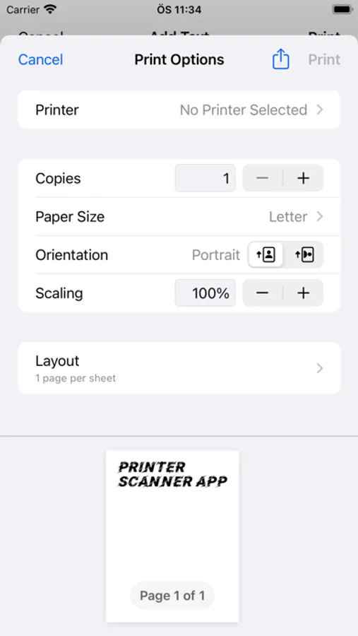 Add any text to the image and crop the image before printing.