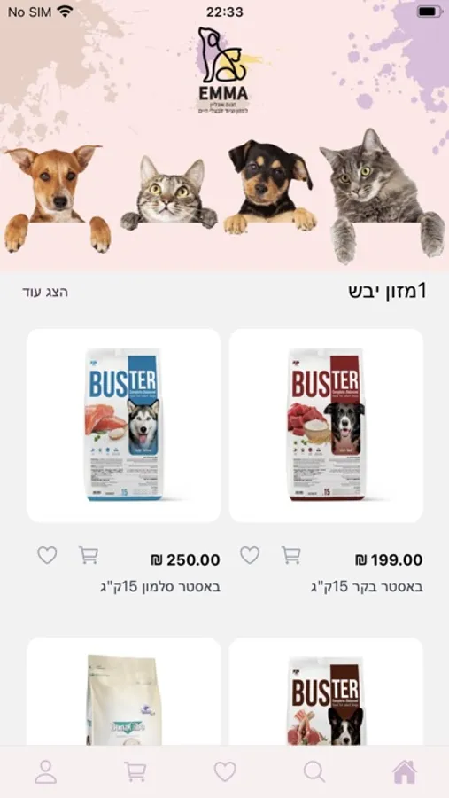 ברוכים הבאים לאפליקציה של אמה - חנות לממכר מזון וציוד לבעלי חיים.