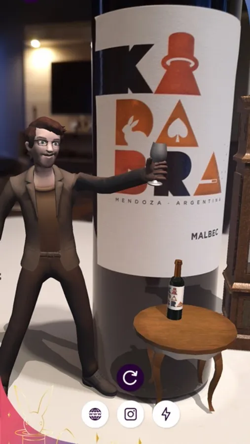 Descarga la app de Kadabra y vive una experiencia única. Apunta con la cámara de tu smartphone y escanea las etiquetas de Kadabra de Malbec, Cabernet Sauvignon y Blend, obtén información importante de cada varietal, notas de cata, proceso de elaboración del vino y mucho más. Cada botella tiene un personaje 3D que tomará vida a través de la realidad aumentada en tu mesa. ¿Quién robó la joya? ¡Abre Kadabra y descubre los detalles de esta historia!.