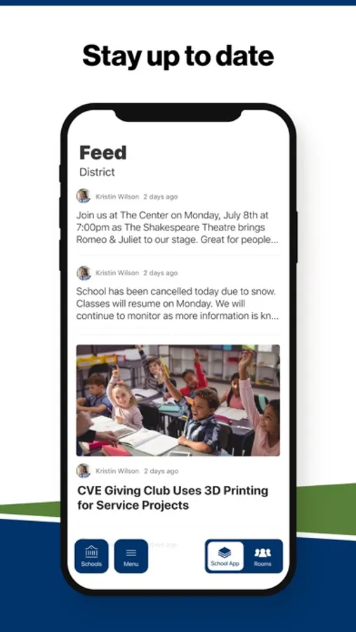 In the Live Feed is where you'll find updates from the administration about what's going on in the district right now. Whether that's celebrating a student's success, or reminding you about an upcoming deadline.