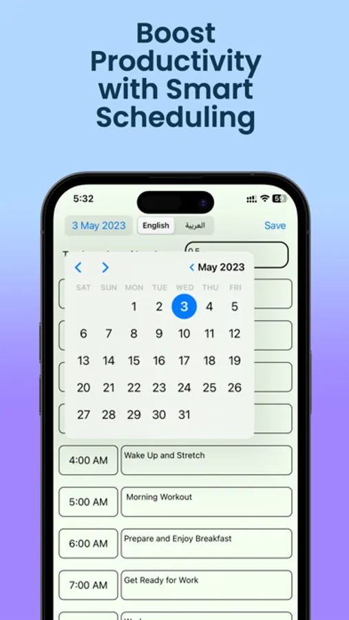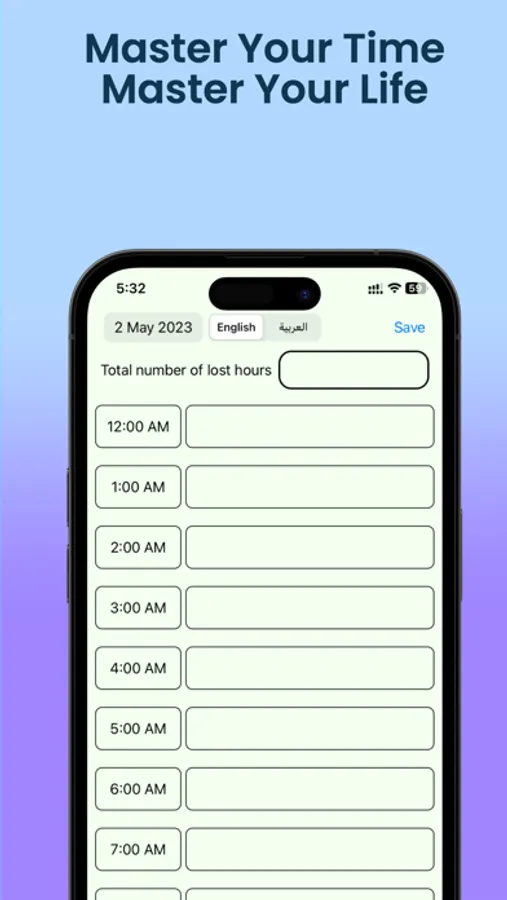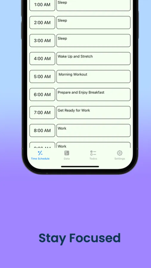 The first screen allows you to create a daily run sheet, scheduling tasks from 12 AM to 11 PM. Easily identify wasted hours and adjust your plans to maximize efficiency.