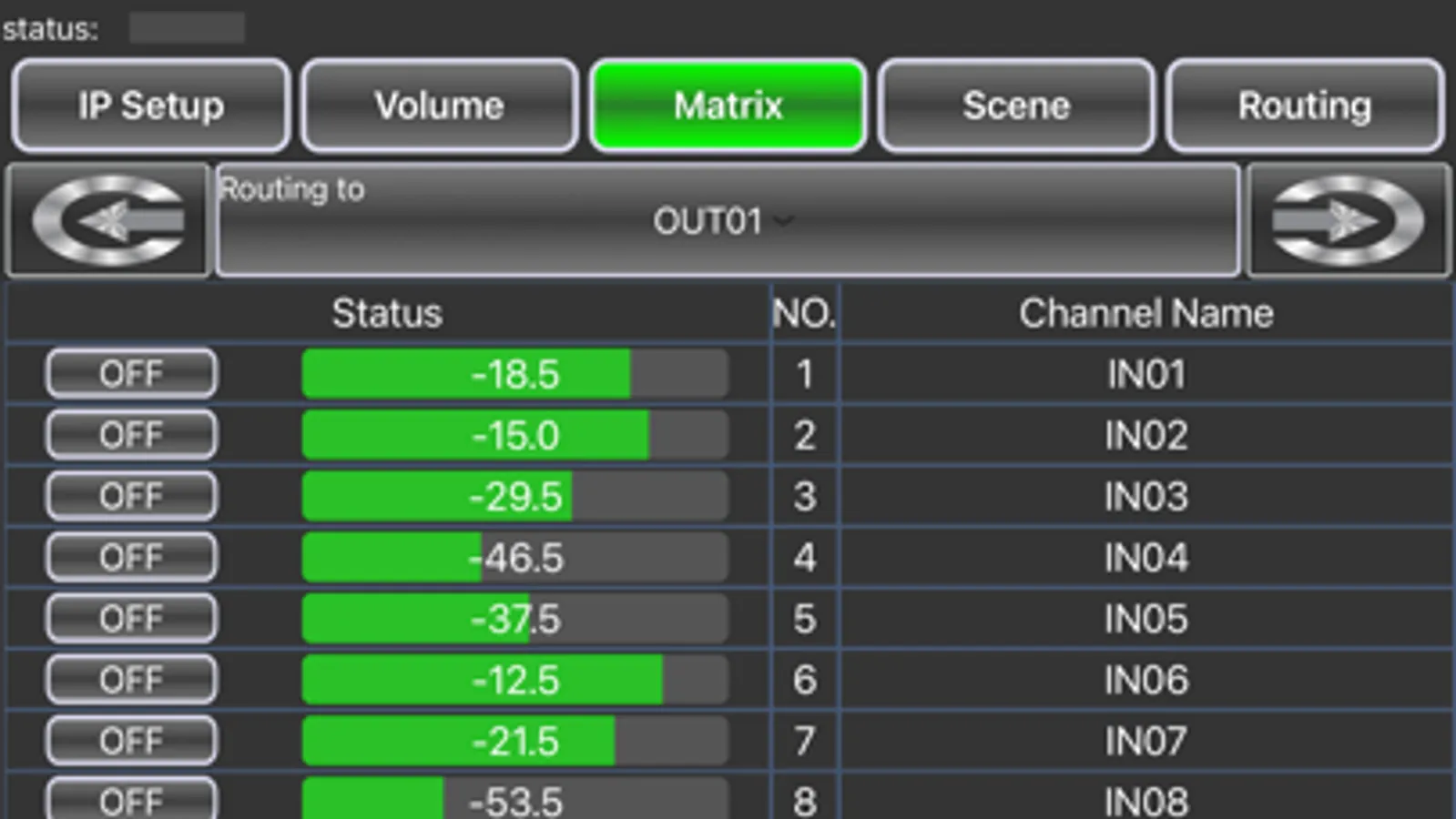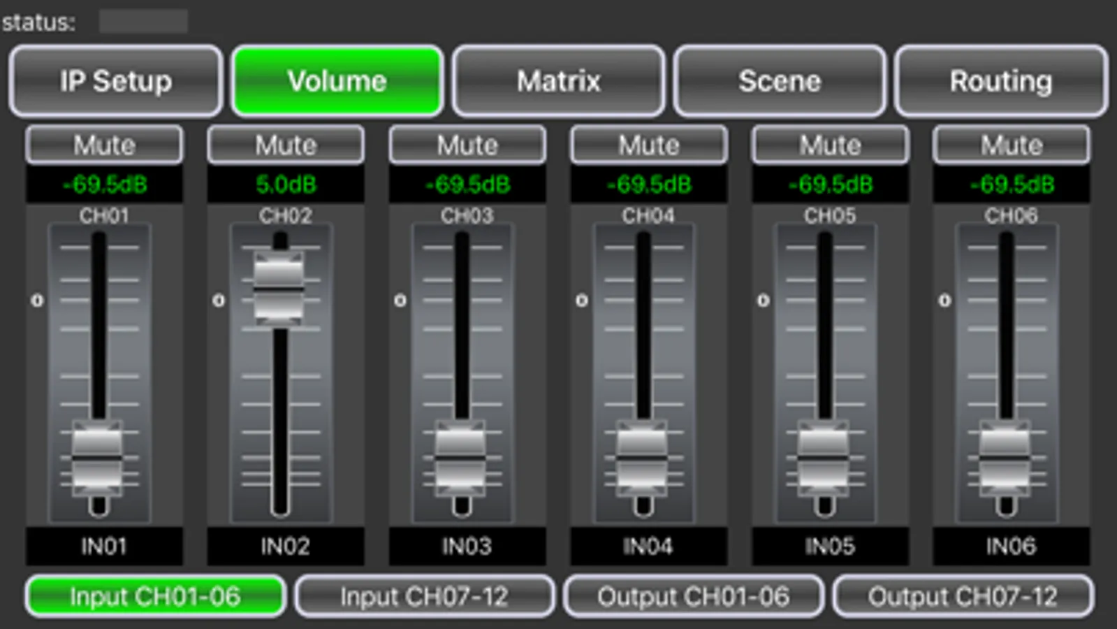 - Adjust the volume of all inputs and all outputs.
