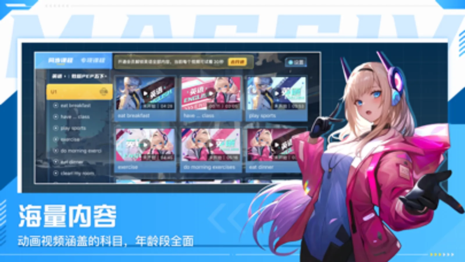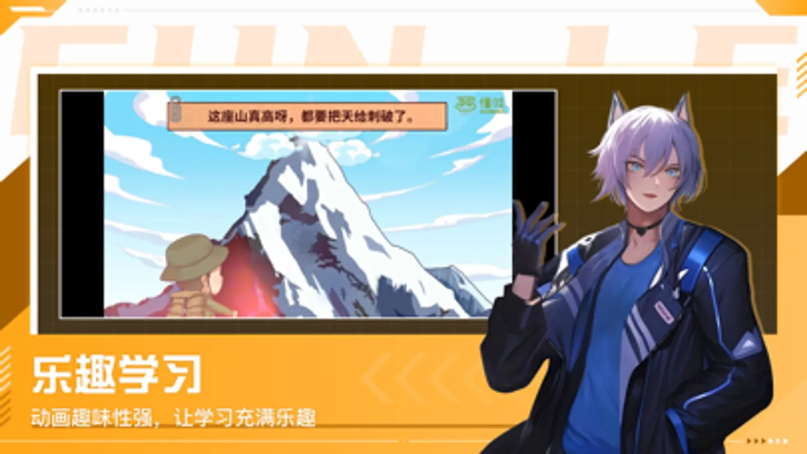 【产品亮点】 1,海量的内容 动画视频涵盖的科目,年龄段全面。 2,乐趣学习 动画趣味性强,让学习充满乐趣。 3,制作精美 精良的场景设计,炫酷的人物,打造沉浸式美感体验。 4,使用体验 横屏更好呈现学习内容,使用方便。专注打造舒适使用体验。