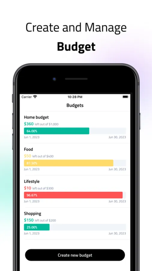 - Budget: Set a budget to help you achieve financial self-discipline and planning.