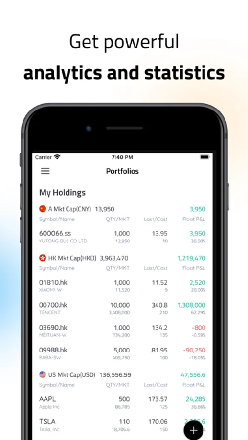 a simple and easy-to-use transaction recording feature that allows you to easily record every income and expense, including salaries, expenses, stocks, funds,etc.,manually input actual or simulated positions and trades.you will be able to see your real-time P&L, returns, holdings, trades, and portfolio statistics.