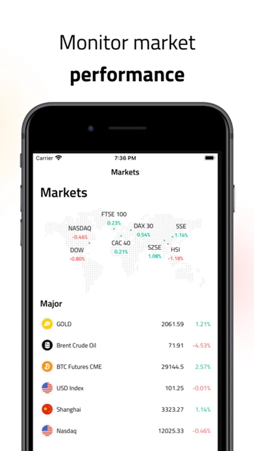 - Market: Provides the world's major stock market indices and exchange rates of major currencies.