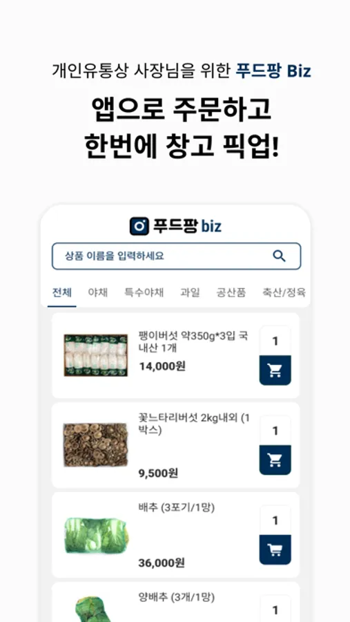식자재 개인유통상 사장님, 푸드팡 Biz에서 납품 식자재 한 번에 주문하세요!