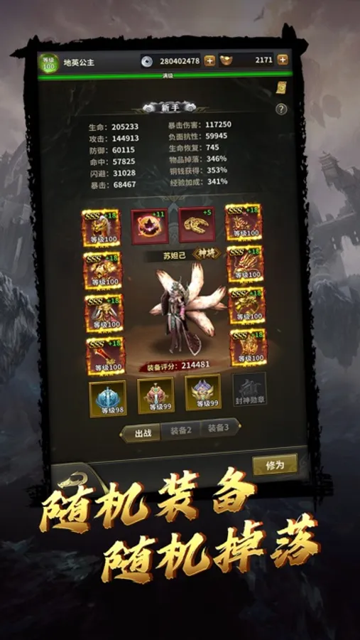 几百种装备、神器、法身、法宝、勋章各有特色。