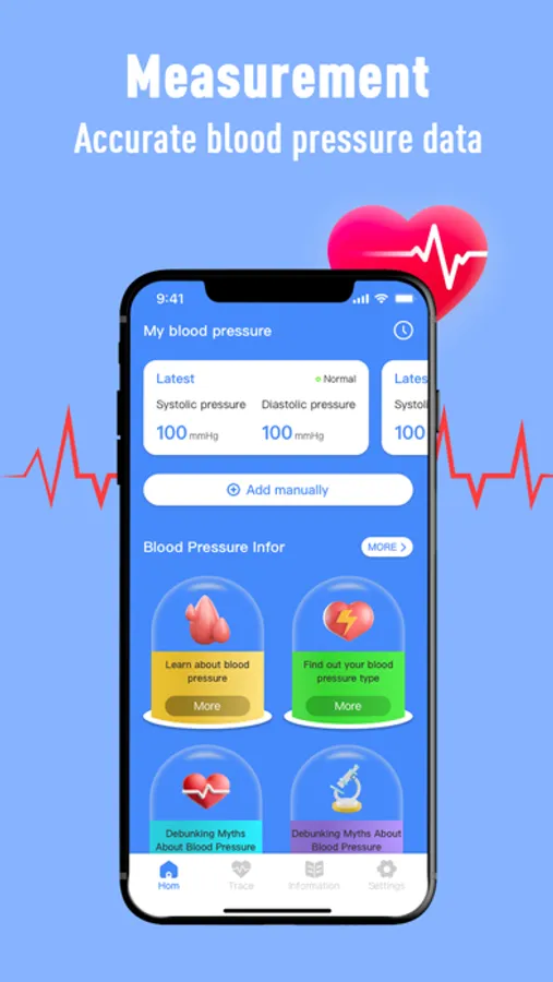 The simple and easy-to-use smart blood pressure recording tool can not only help you easily monitor blood pressure at home, but also provide a lot of popular science knowledge about blood pressure, so that you can have a more comprehensive understanding of blood pressure and better control of blood pressure.