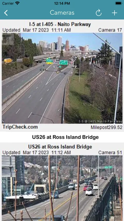 Create custom groups of cameras based on your frequented routes and then simply scroll through the list of images. This makes viewing traffic and road conditions significantly faster. If you prefer to view a single camera at a time, this option is also available.