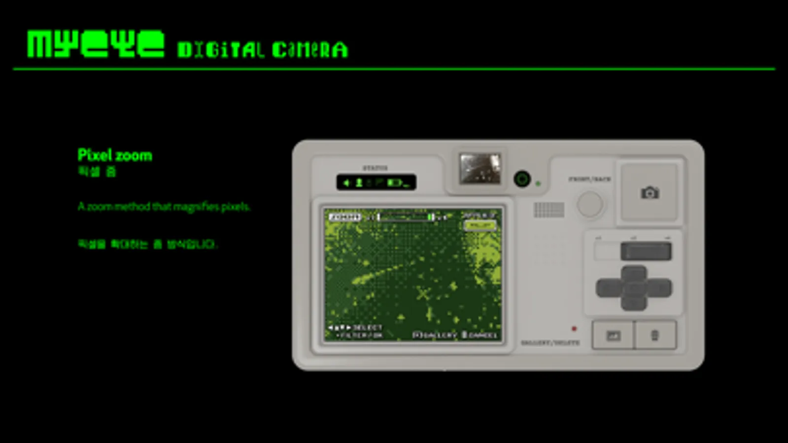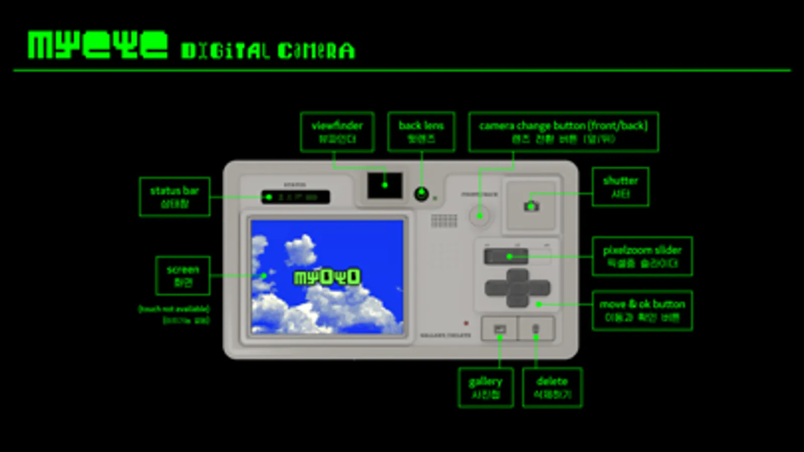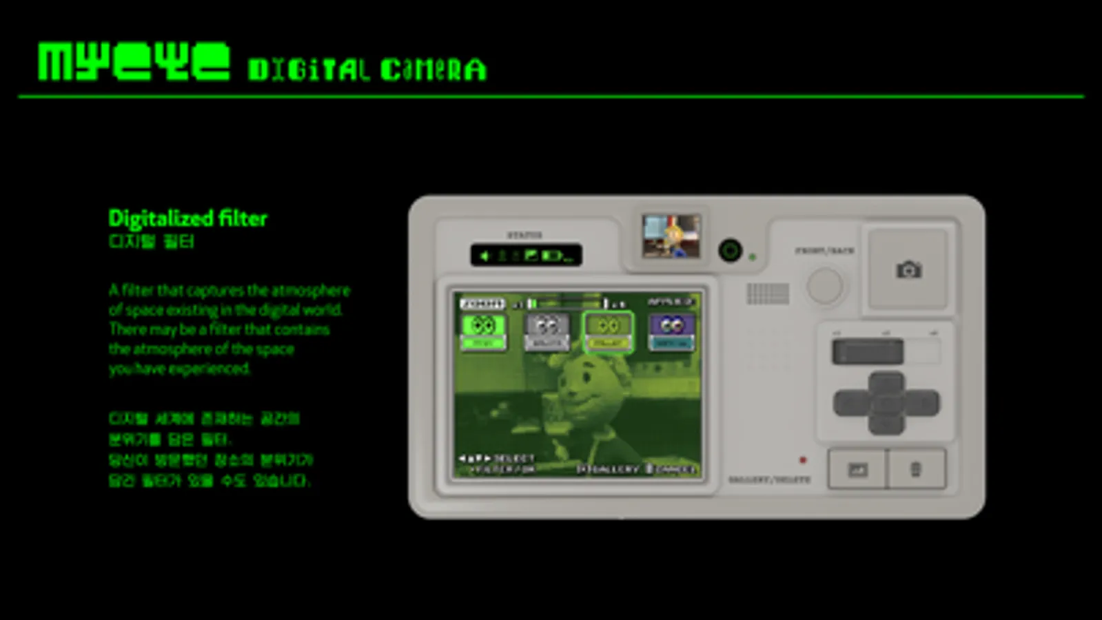 MYeYe 디지털 카메라는 2000년대 초반 디지털 카메라의 사용자 경험을 바탕으로 제작되었습니다.
