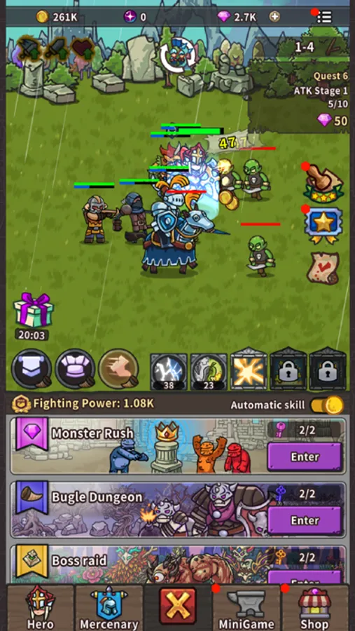 - Manage your mercenary squad with over 40 skills of heroes and mercenaries, as well as the player's commanding skills and formation, and play the game