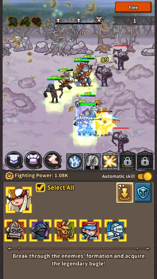 - Grow your own mercenary squad through various skills and synergies of heroes and free company