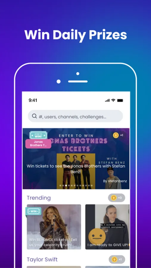 On Zigazoo enter challenges to top the leaderboard or win prizes like concert tickets to your favorite artists like Taylor Swift, Beyonce, SZA, Post Malone, Blackpink, and the Jonas Brothers, gift cards to your favorite stores or copies of your favorite video games.