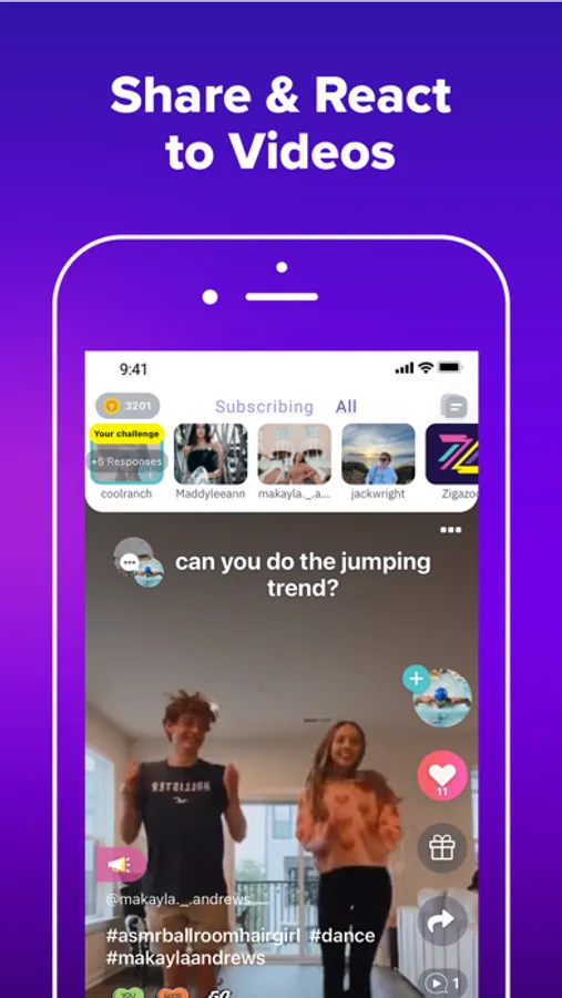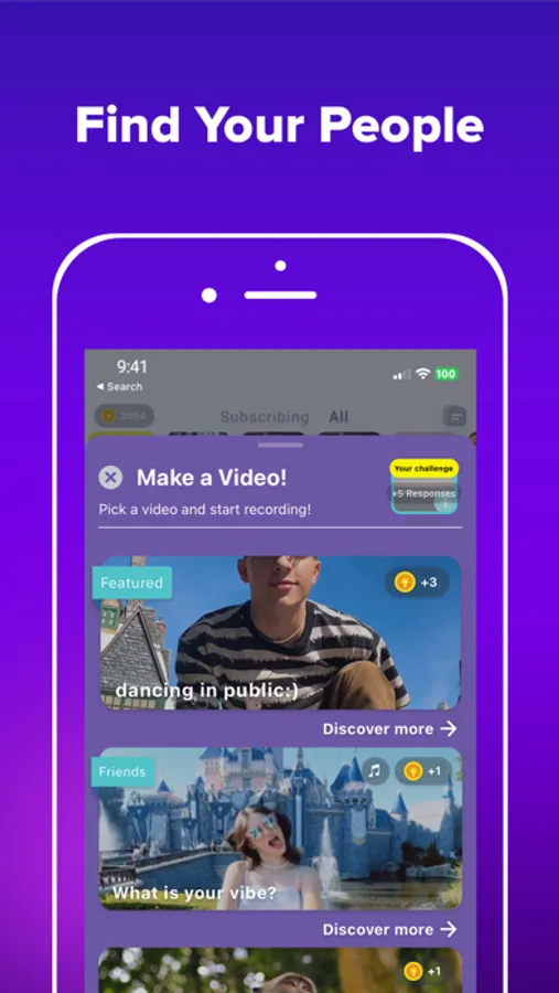 Unlike TikTok, Snapchat, Instagram, Youtube, and Likee, you can reply to videos with other videos — so it stays more real, safe, and authentic.
