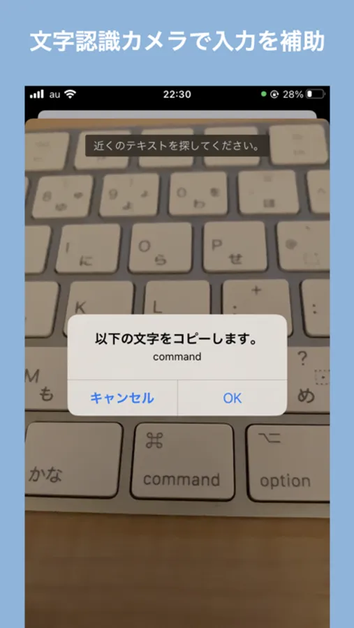 文字入力の際に入力しづらいゲームのIDなどは、カメラの文字認識機能を使ってコピーアンドペーストすることができます。