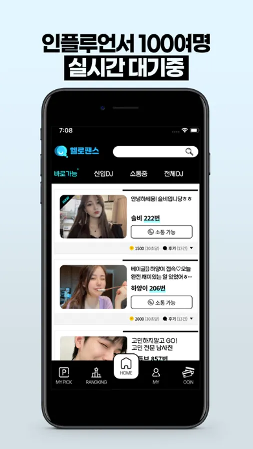 이젠 멀리서 보던 인플루언서와 1:1 실시간 소통하세요!