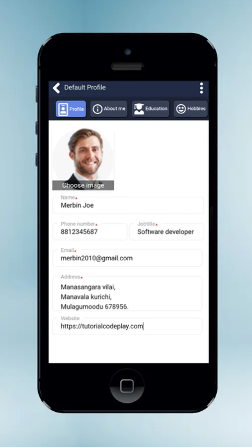 About me - Your introduction can enter here, depending on your selected template the app will automatically place you in the right place.