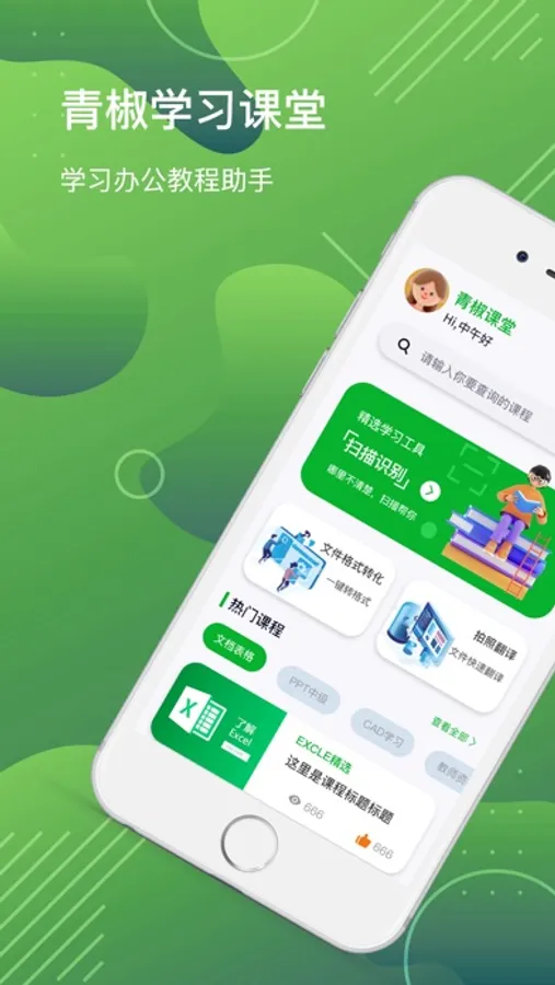 穆岩青椒课堂办公教程助手,是一个助你一臂之力的学习课堂工具,提供热门课程、番茄专注学习、扫描识别、格式转化、拍照翻译等服务。