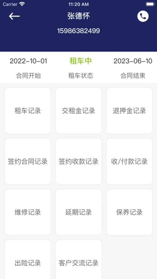2、可记录并查看车辆、客户相关出租信息、租金支付记录