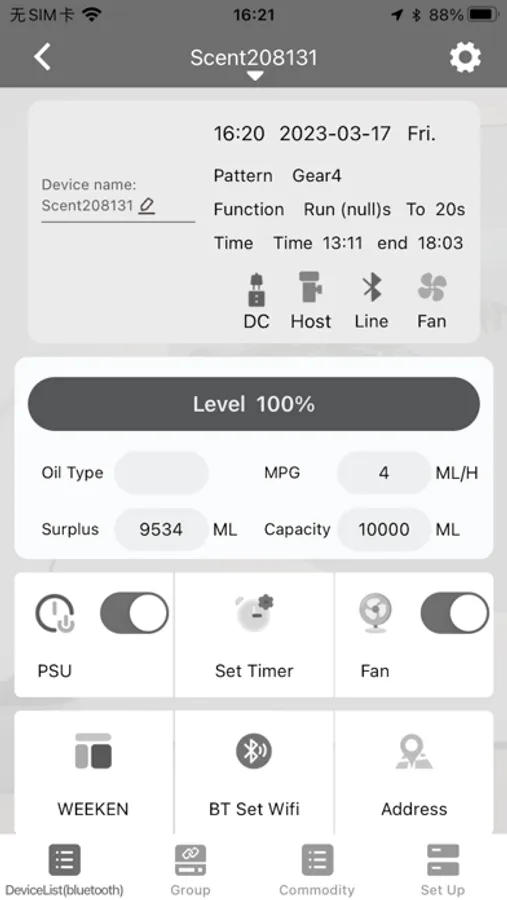 Smart Fragrance is an app that controls external devices such as fragrances. It can achieve remote control of equipment switching on and off and timing. Remote control can be achieved through WiFi scanning and binding, and can also be controlled through Bluetooth connection within the Bluetooth range. Convenient to use, simple to control, and stable connection, it is the best choice for home and long distance travel.