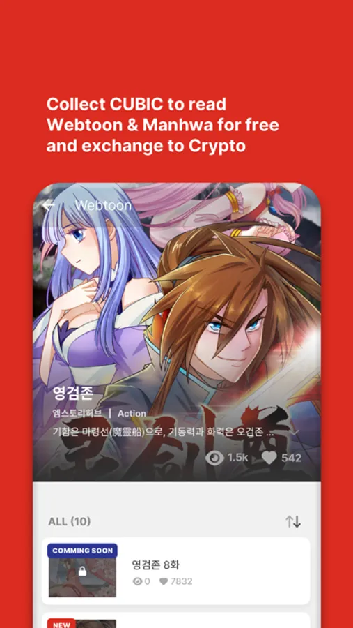 By pressing the “LIKE” button on your favorite Webtoons/Manhwa, you can collect CUBIC and read even more.