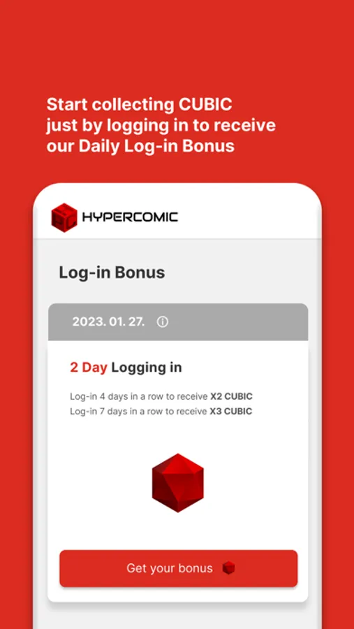 With HYPERCOMIC Play, you can collect CUBIC and use them to read Webtoons/Manhwa for free or exchange them for HYCO tokens.
