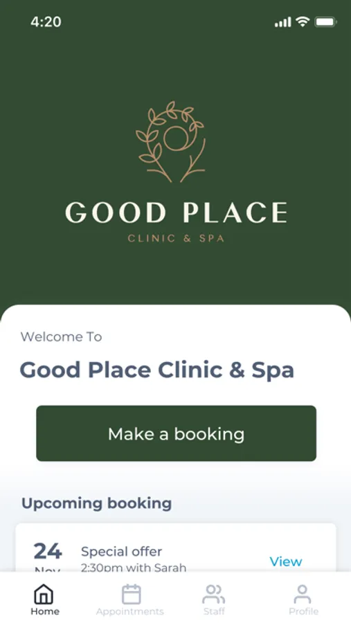 The Good Place Clinic & Spa app makes booking your appointments and managing your loyalty points even easier. You're just a few taps away from feeling good and looking great!