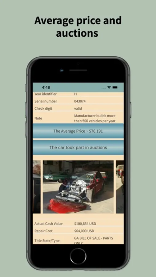 Moreover, our app not only provides information about the car, but it can also tell you if the vehicle has participated in auctions and provide you with the average price of the vehicle if such data is available. With our VIN Decoder and VIN Number Check app, you can have all the information you need about a vehicle right at your fingertips.