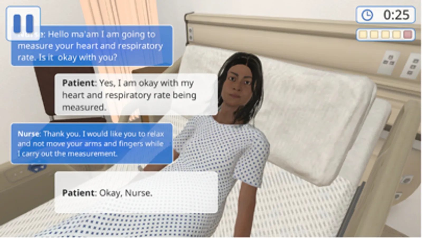 Heart Rate & Respiration Rate Monitoring Game, a serious game for healthcare training, provides healthcare workers focal training on performing heart rate and respiratory rate measurement for inpatients.