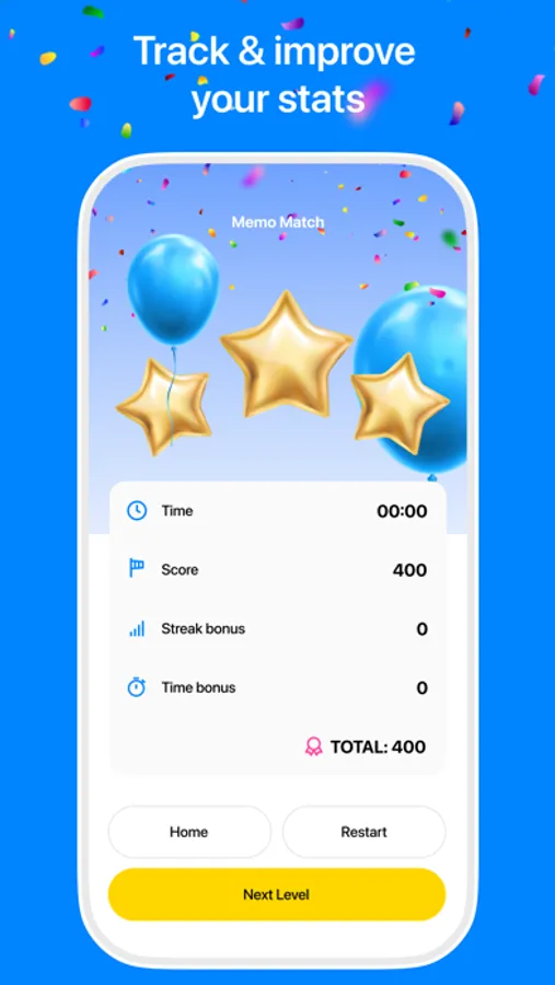 So, go ahead! Select the game yourself or play the game of the day that we’ve handpicked for you. Track your progress with level statistics. Grow from level to level and gradually improve your mental skills with us.
