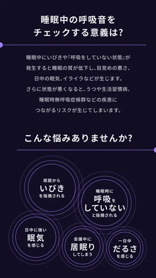 睡眠中にしっかりと呼吸することは、日中の活動のクオリティに直結します。 自分の睡眠をアプリでチェックしてみましょう!