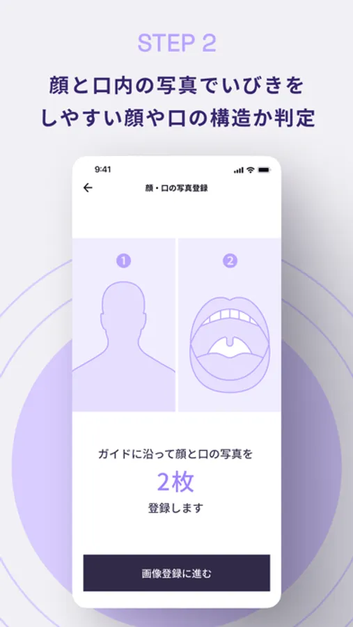 2.いびきをしやすい顔や口の構造か判定するために「顔・口の写真」登録