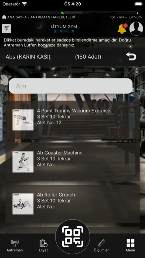 Antrenmanlar: Bu bölümde, spor kulübünde yapacağınız 1500'den fazla egzersizi görsel olarak inceleyebilir, özel antrenman programınızı ve günlük bölgesel gelişiminizi takip edebilirsiniz.