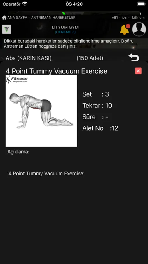 ANTRENMAN MODÜLÜ: Bu modülle günlük antrenmanlarınızı seçebilir, canlı resimlerle gözden geçirerek her hareketi doğru şekilde yaparken setlerinizi takip edebin edebilirsiniz. Her egzersizden sonra sistem otomatik olarak bir sonraki egzersize geçerken, bitirdiğiniz hareketi işaretleyebilir ve bölgesel çalışma yapabilirsiniz.