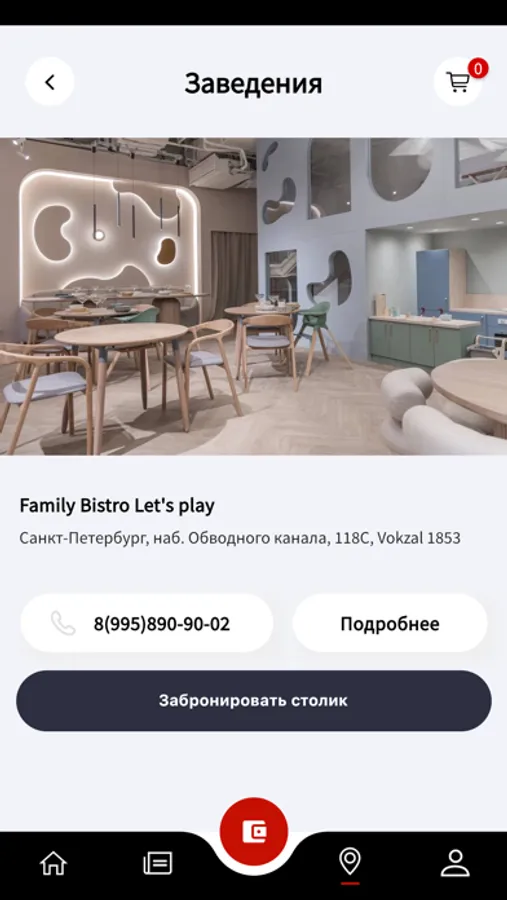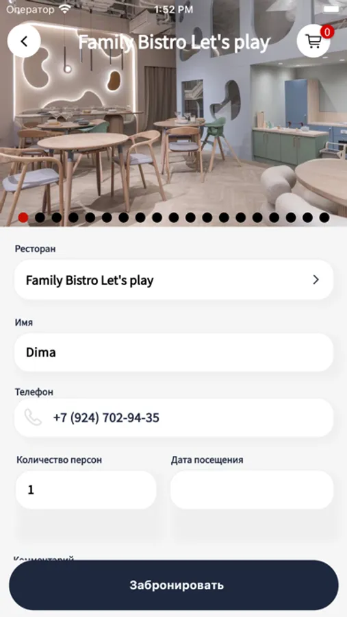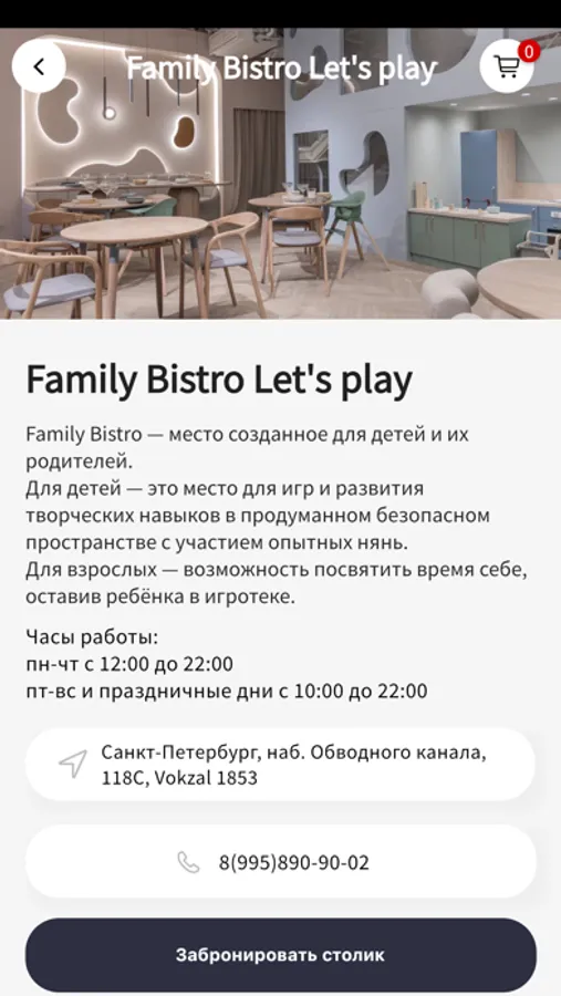 Приложение для просмотра меню заведения "Family Bistro" и бронирования столиков.