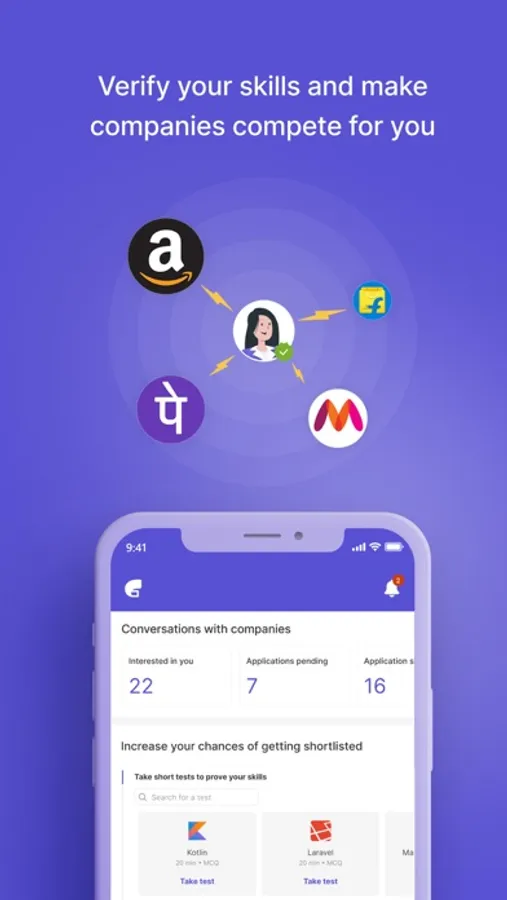 • Verify your skills to land the best interview calls based on your merit and accomplishments.