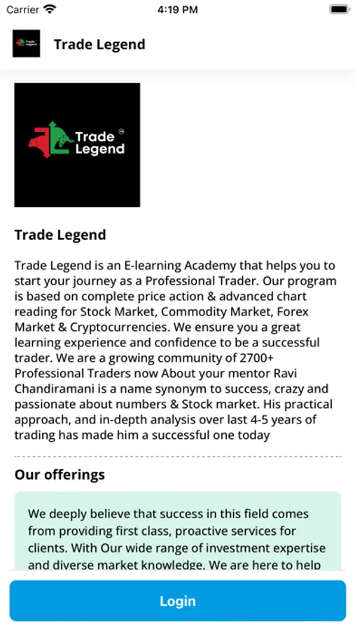 The academy assures a great learning experience and instills confidence in its students to become successful traders. Trade Legend is proud to be a part of a growing community of 2700+ professional traders.